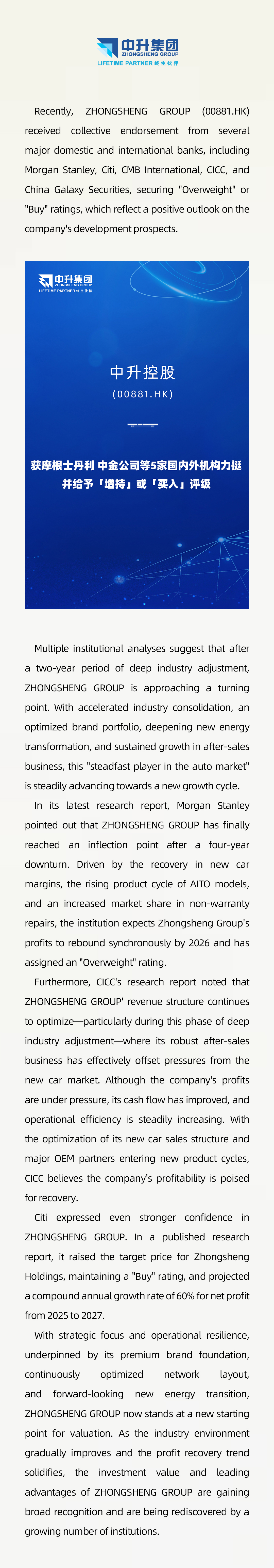 Zhongsheng GROUP Receives Multiple "Overweight" Ratings
